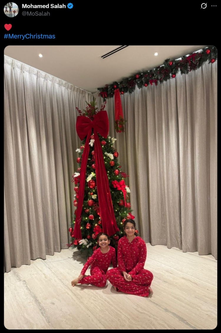 - 萨拉赫更新社媒,晒两个女儿与圣诞树的照片:❤️